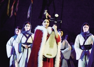 王昭君作为和平使者,远嫁漠北草原,留下昭君出塞的历史佳话。骚人墨客吟咏千年,将她的故事汇入了民族融合的恢宏叙事。唐代诗人张仲素用“剑戟归田尽,牛羊绕塞多”来形容昭君出塞后生活安定、生产繁荣的景象;元代诗人赵介用“犹胜嫖姚千万兵”颂扬王昭君对平息战争、安定边境的贡献;现代史学家翦伯赞以“如何一曲琵琶好,鸣镝无声五十年”,肯定王昭君在政治和文化交流中发挥的作用。