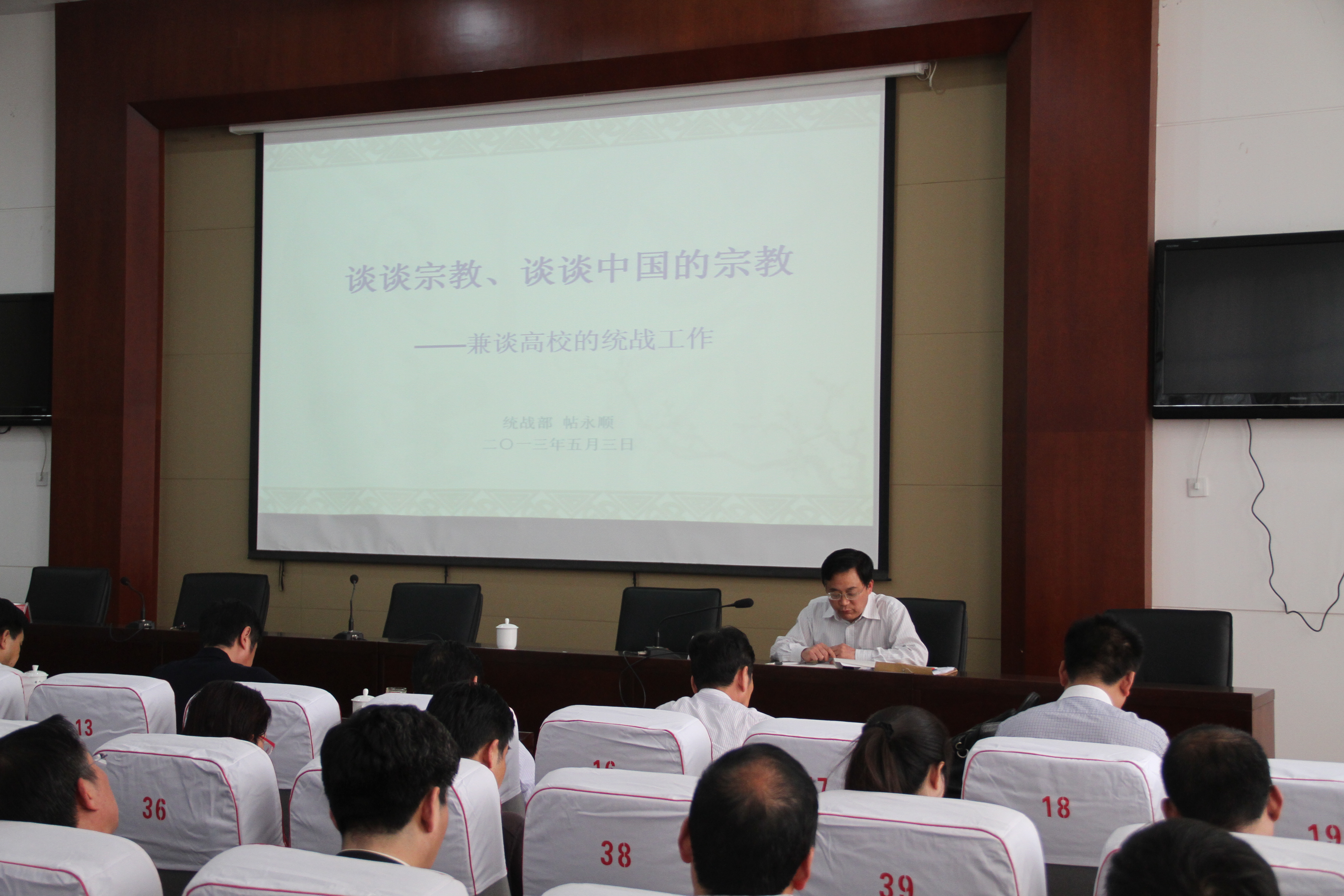 统战部部长作专题讲座,校党委中心组全体成员、副处级以上干部等150多人出席了讲座。