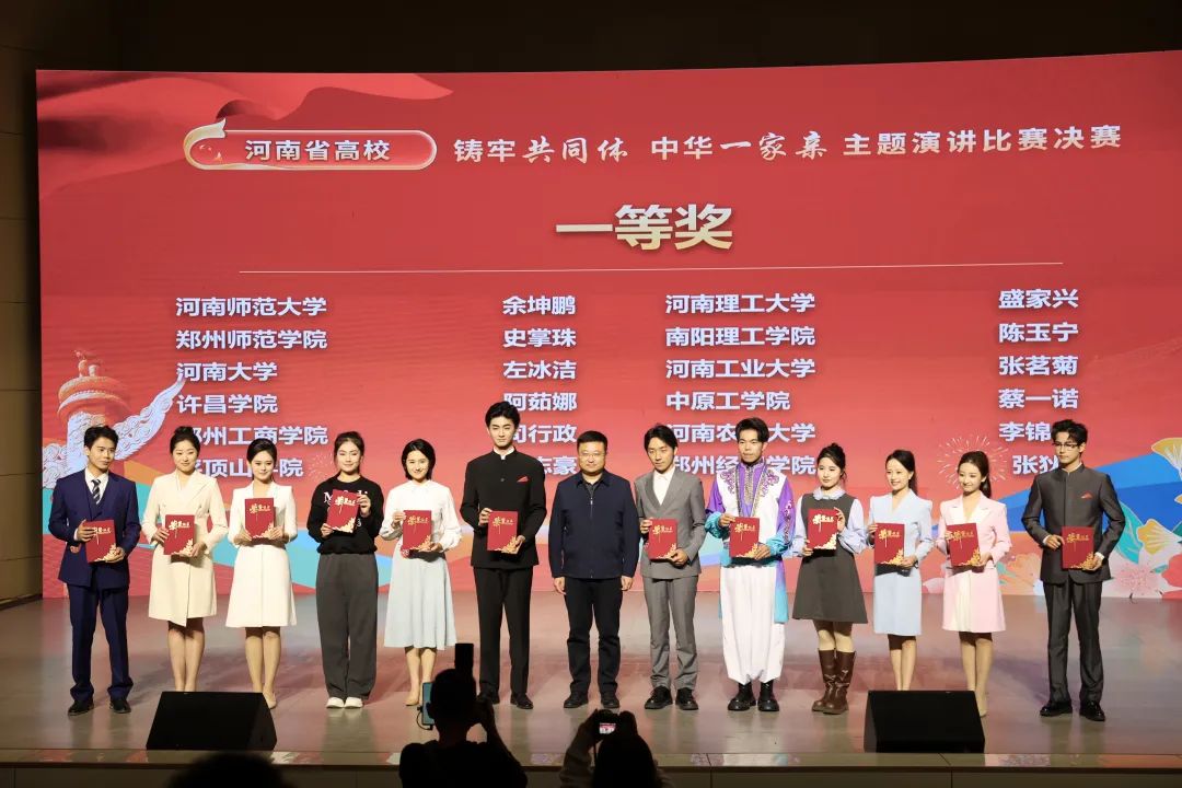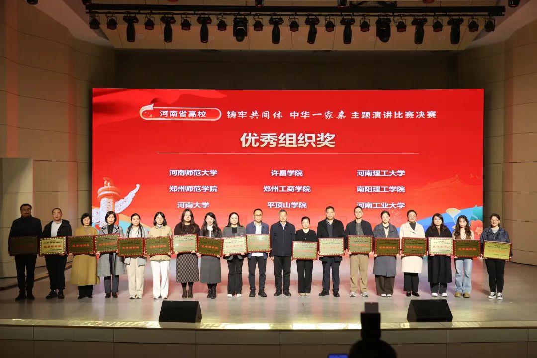 11月14日,由河南省委教育工委、省教育厅、省民族宗教委主办的河南省高校大学生“铸牢共同体 中华一家亲”主题演讲比赛决赛在河南师范大学举行。我校选送的作品《筑梦共同体 青春正当时》获一等奖,学校获“优秀组织奖”。